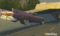 | リプレイ画面にはノーマル画面とレースアングル、ドライバーズビュー、そして自車の後方から見るビハインドビューの4つがある。△ボタンで切りかえる事が可能で、ドライバーズビューとビハインドビューは、R1L1ボタンでぐるぐると視点を切りかえる事が可能。 ミュージックプレイヤーでも同様の事が可能。 |